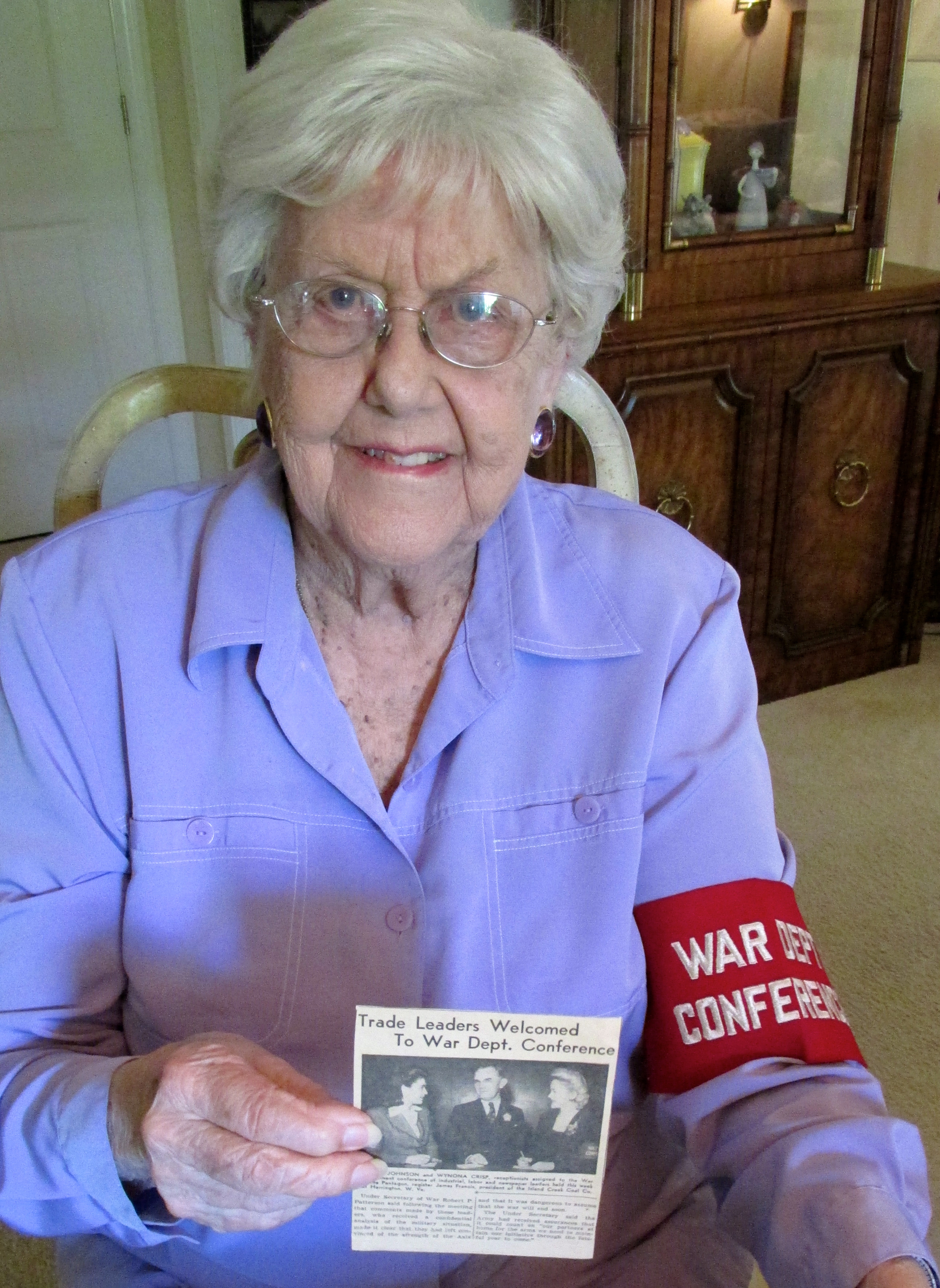 The letter was just one piece of memorabilia Eethel shared as we discussed her work at the Pentagon. Because of her Glamour Girl looks, Eethel was singled out by photographers for publicity shots, articles, and advertising. The black and white stills clearly show a vibrant, stylish, and focused young woman. She took her job at the War Department seriously, made friends with co-workers, military officials, and celebrities (Melvyn Douglas and Horace Heidt among them) easily, and eventually parlayed her wartime office skills into postwar business success, including opening a thrift store in her retirement community when she was 93 years old.